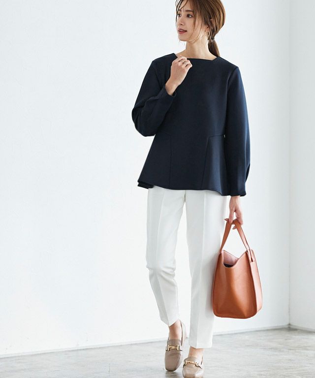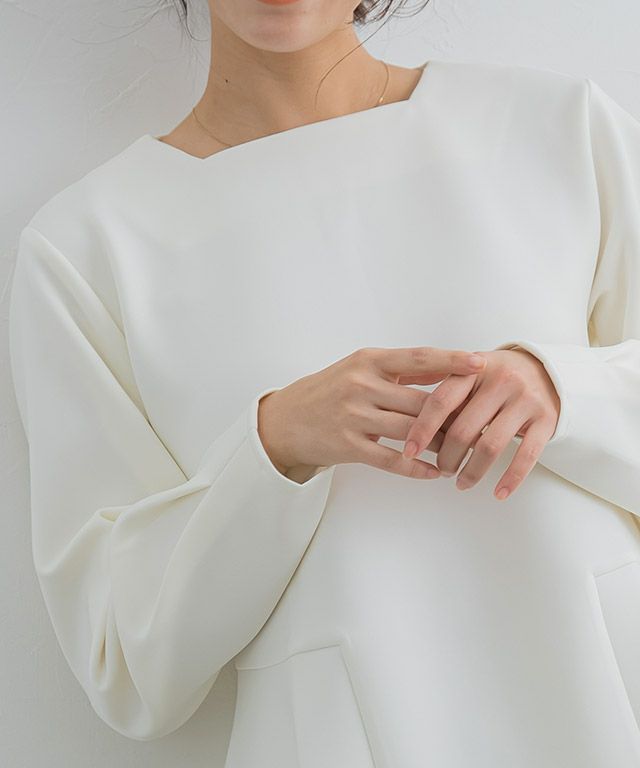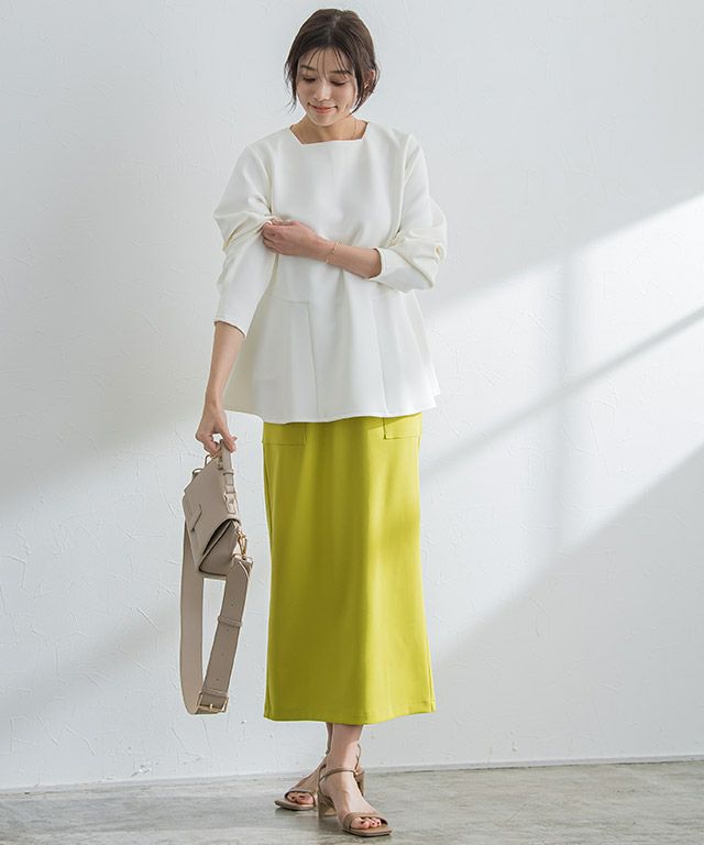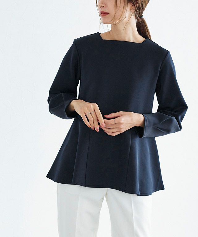 大人のフェミニンスタイルへ仕上げる“ダンボールスクエアネックフレアカットソー”