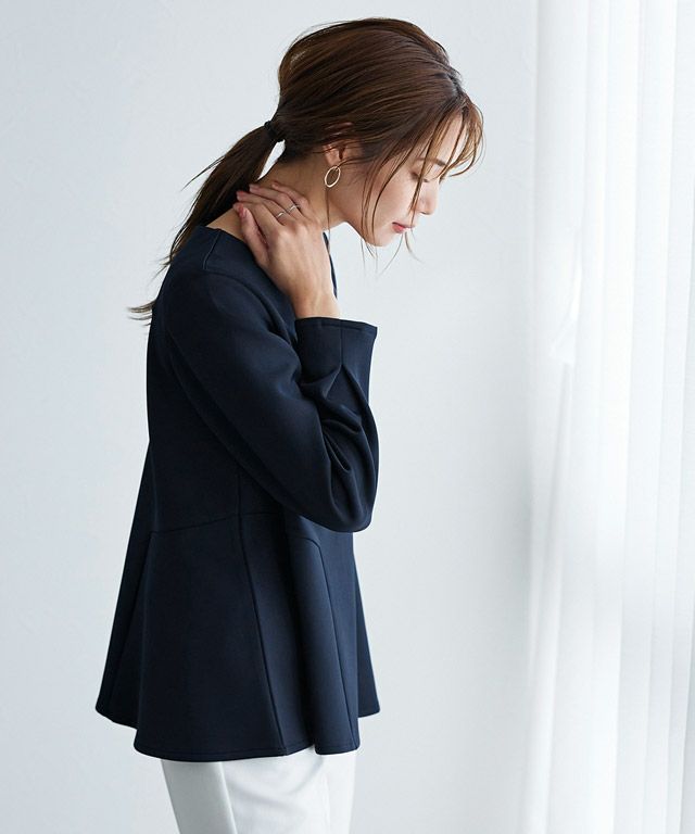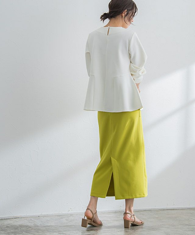 袖を下ろしている状態でも立体感のあるシルエットになるよう袖口にタックを施し、ウエストから切り替えたディテールが絶妙なフレア感を演出。一枚でフェミニンな装いに◎