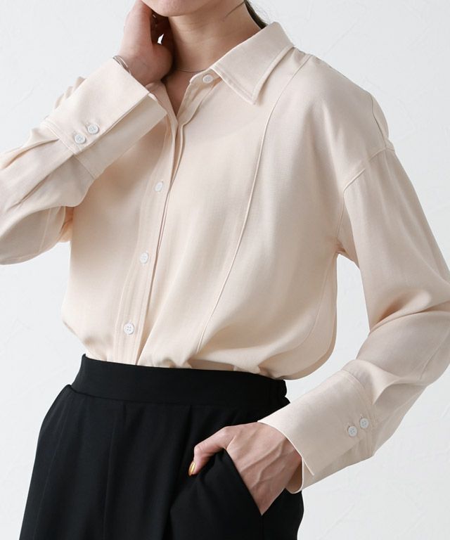 大人のこなれ感を演出する“シャンブレーライクシンプルシャツ” 光沢感とシャンブレーライクな表面が大人な雰囲気に導き、滑らかな肌触りが魅力的。 無駄なディテールを省きシンプルに仕上げ、一枚での着用はもちろんレイヤードスタイルもおすすめです。配色のステッチやボタンがシンプルながらもアクセントになり、ロングカフスがこなれ感をプラスします。 【ブランド】 marvelous by Pierrot(マーベラスバイピエロ)