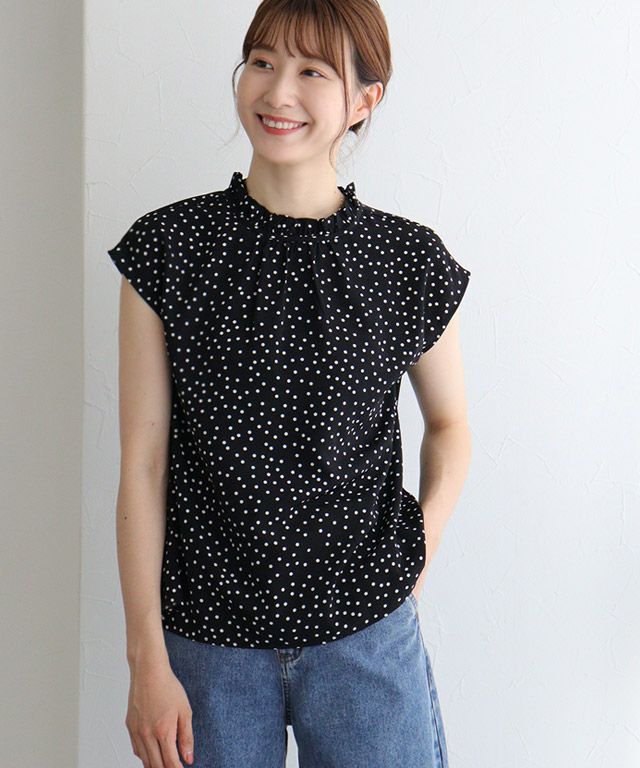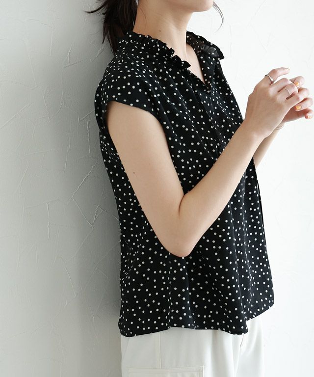 甘すぎず大人っぽく着こなせる“2wayドットフリルカラーブラウス”