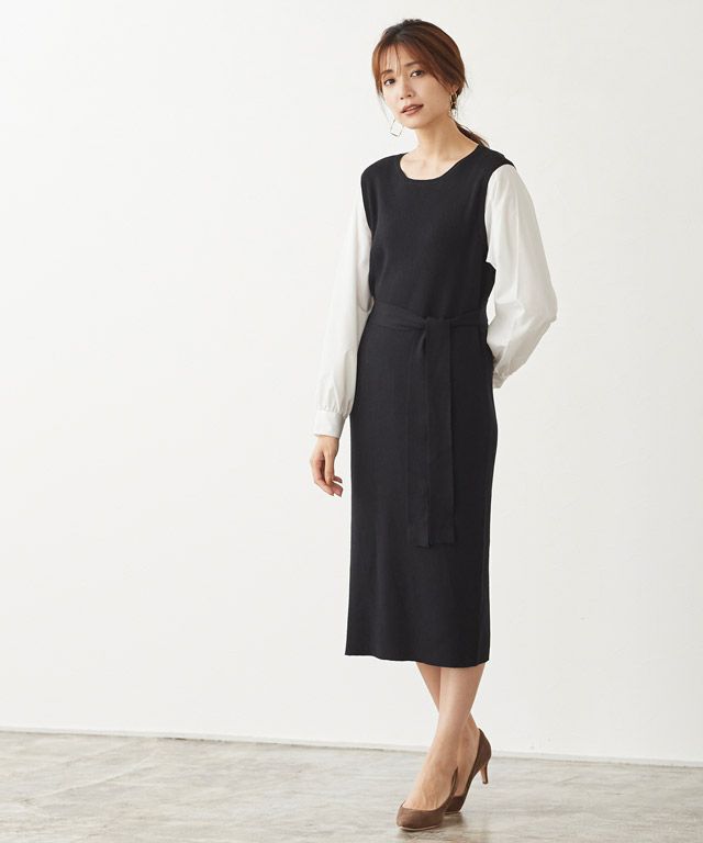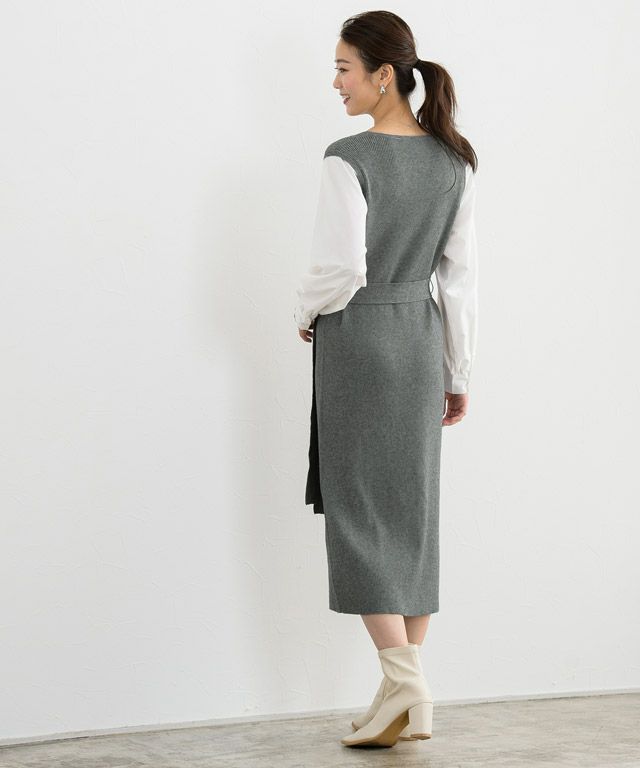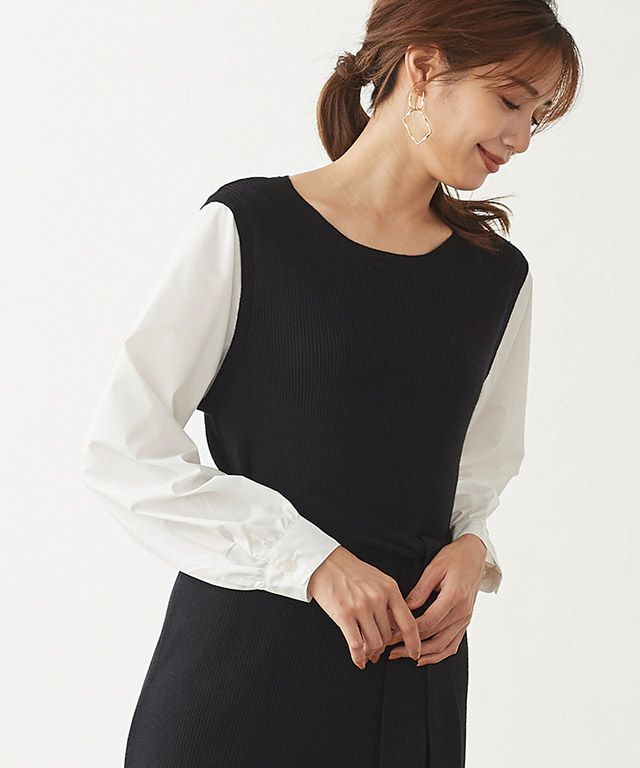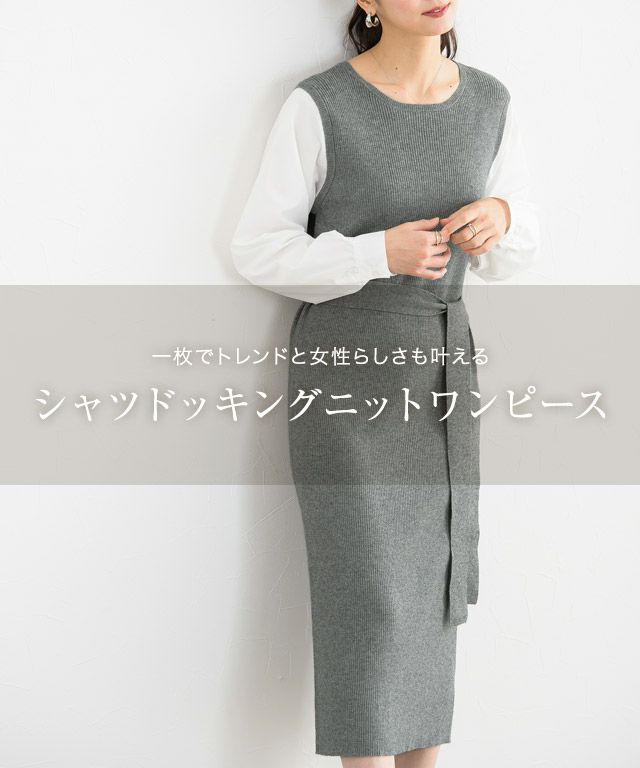 一枚でトレンドと女性らしさも叶える“シャツドッキングニットワンピース”