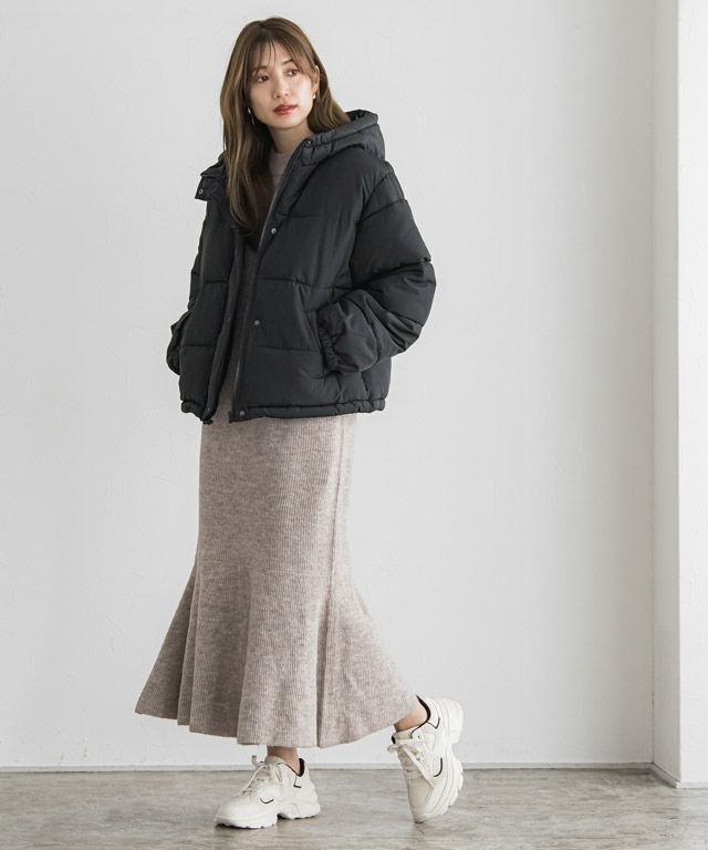 ふんわりウォッシャブル裾切り替えプチハイネックニットワンピース