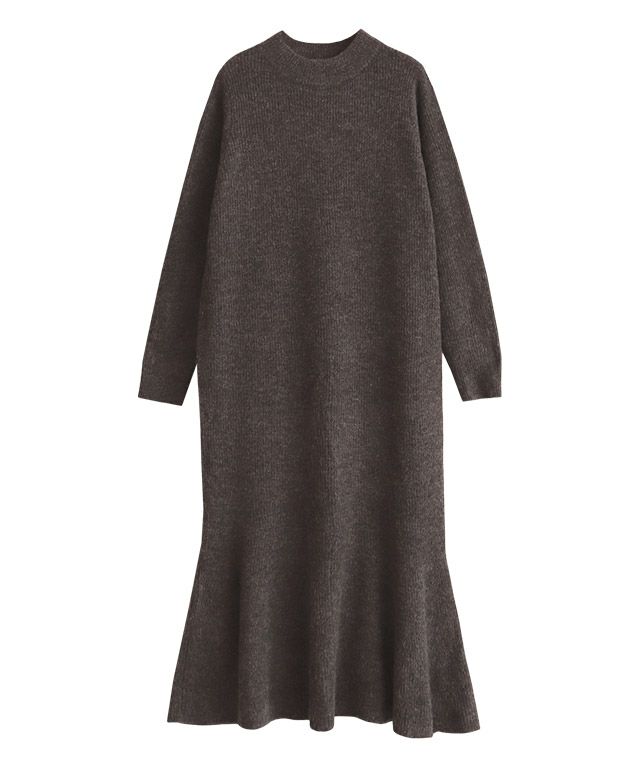 女性らしさ漂う“ふんわりウォッシャブル裾切り替えプチハイネックニットワンピース”