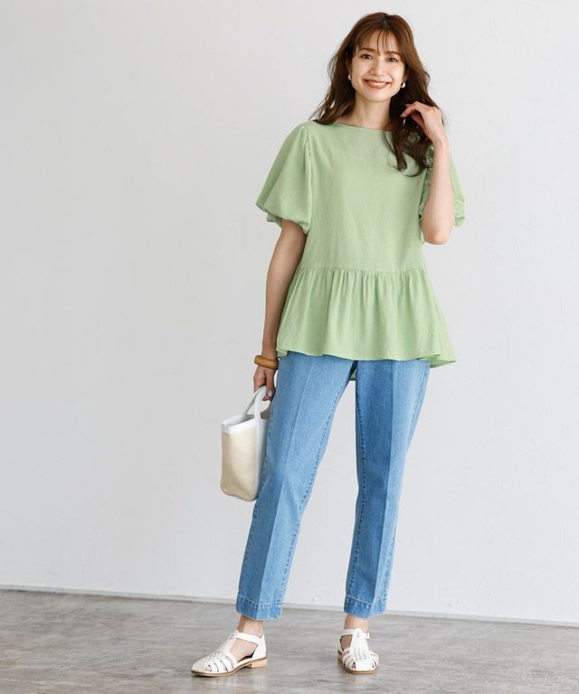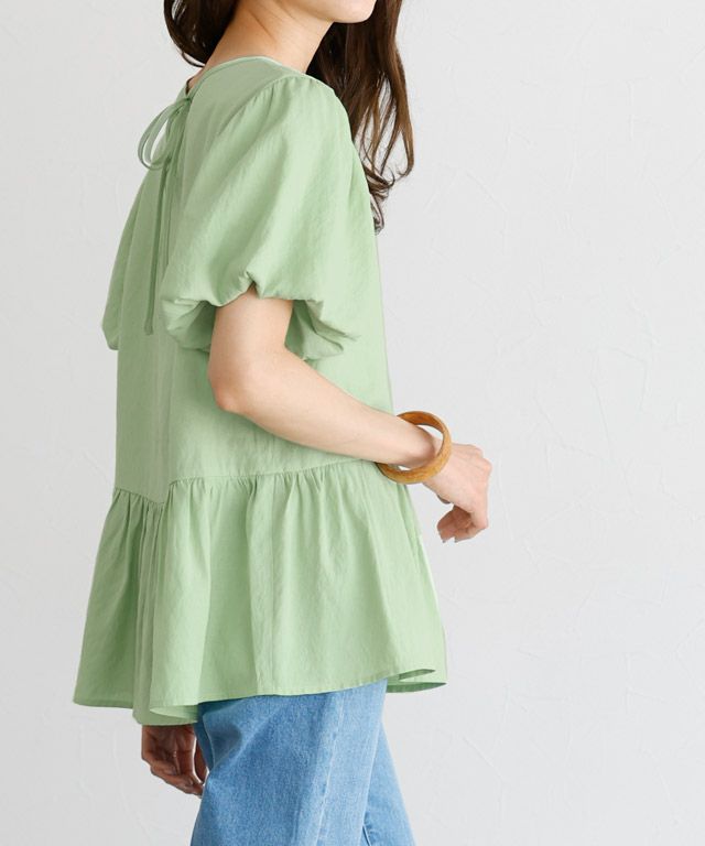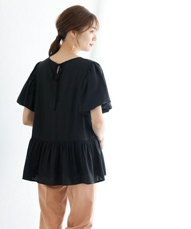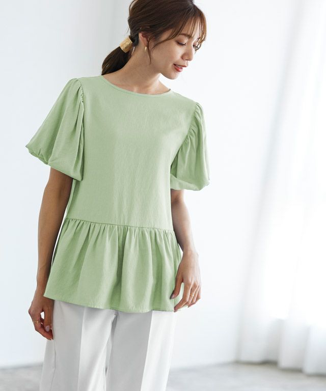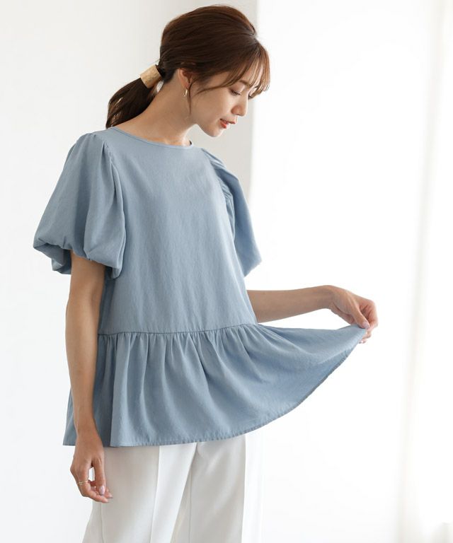 ボリュームのあるパフスリーブがトレンド感をプラスし、腕周りを華奢に見せてくれます。フリル切り替えで女性らしさを演出し、体型カバーにもなるデザイン◎シンプルなボトムスに合わせても着映えするブラウスです。
