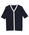 程良いアクセントとマリンな印象をプラスする“配色リブニットカーデ”