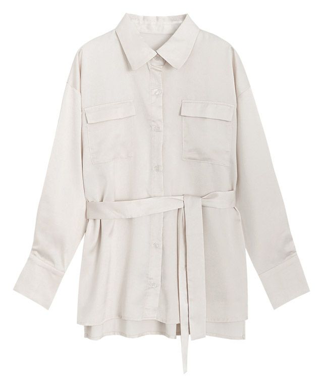 両胸元にあしらったポケットデザインがアクセントになる一枚。ややオーバーシルエットながらも、共地のリボンベルトでウエストマークすることでメリハリのある着こなしに仕上がります。長めの丈感が気になるヒップラインをしっかり隠してくれるところも嬉しいポイント。シャツとしてはもちろん、ボタンを外せば羽織りとしても活躍する万能アイテムです。
