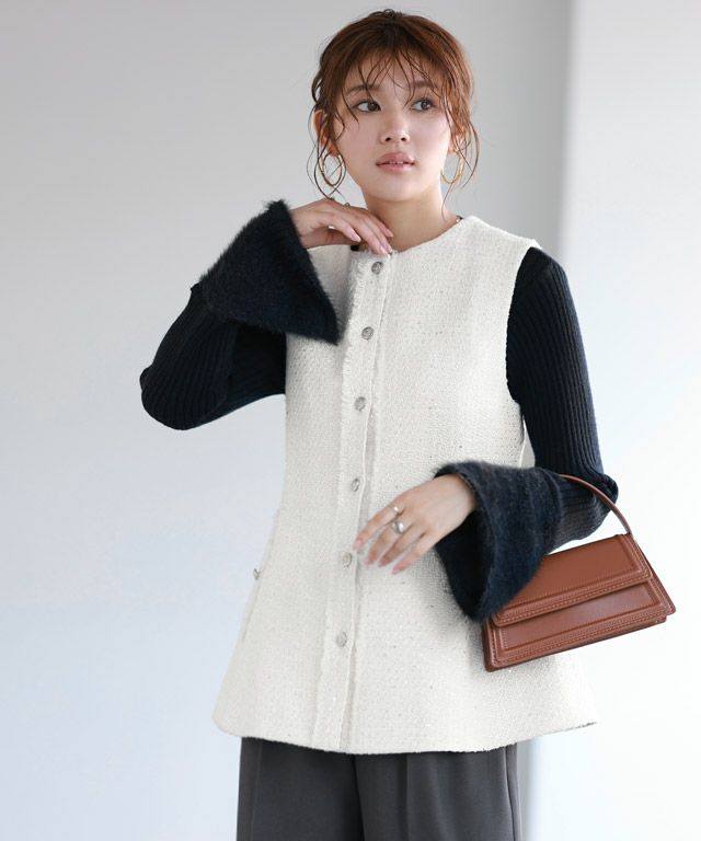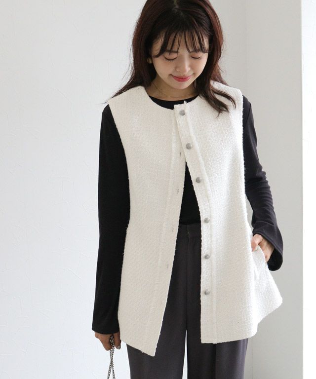 他の画像を見る #SALE 販売期間 2025/12/02 17:00 〜 \WINTER SALE!15%OFF/ ラメ入りゴールドボタンジャケット ¥ 7,990 税込 ¥ 6,792 税込 お気に入りに登録する
