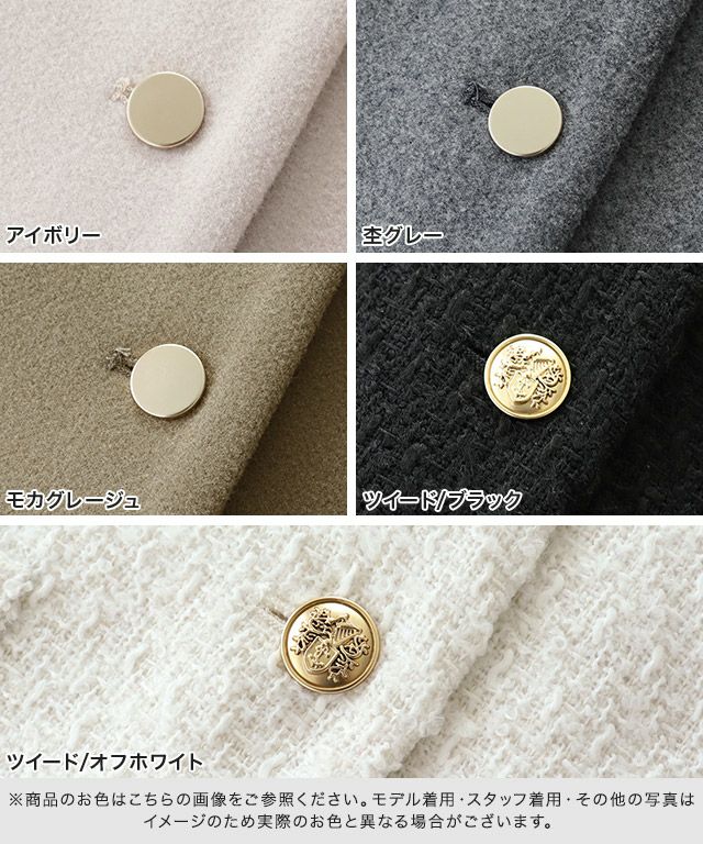 ツイード素材はしっかりとした厚みがあり、特有の凹凸感が女性らしい華やかさをプラス。