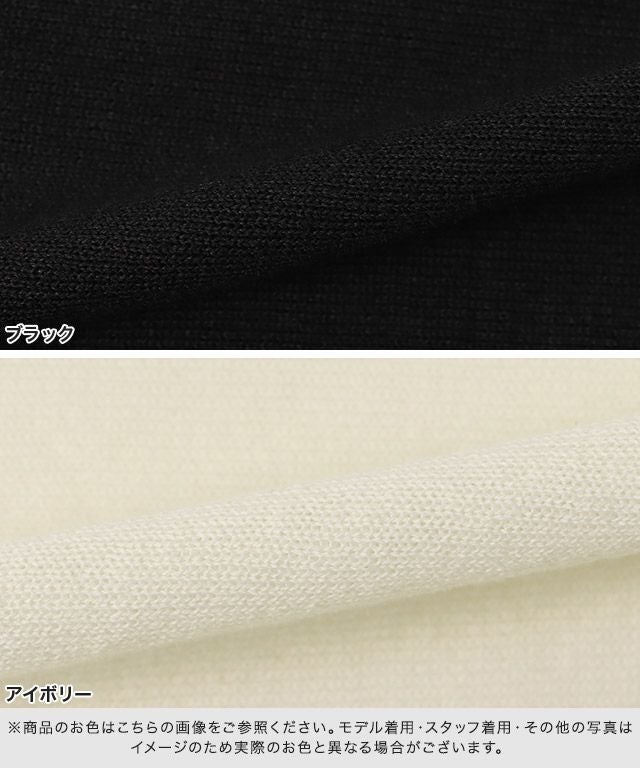 また、ニット製品は生産の過程上「生地を織る際の糸の継ぎ目」繊維の「混紡」、プレス加工、製品洗い加工によって形やサイズ(5cm前後)に誤差が生じる場合がございますが品質上の問題はございません。