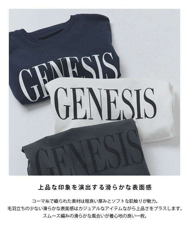インパクトのある大きめのロゴがスタイリングにアクセントをプラスします。明朝体でカジュアルになりすぎず、大人の上品さを取り入れたデザインに仕上げました。ゆるっとしたサイズ感が程よく抜け感のあるラフなスタイリングに導きます。