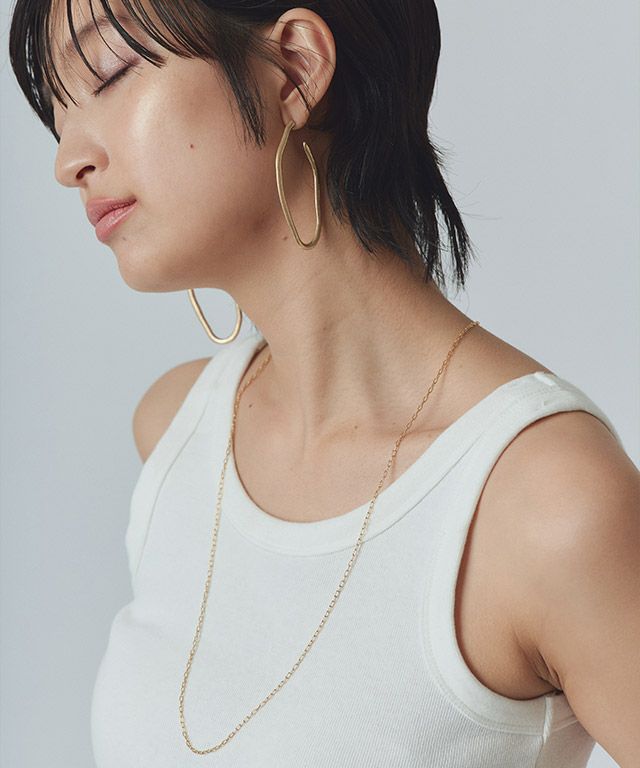シーズンレスに着用できるようなデザイン。チェーンはオリジナル性のある、シグネチャーリンクでアクセントになる1本です。