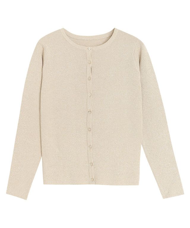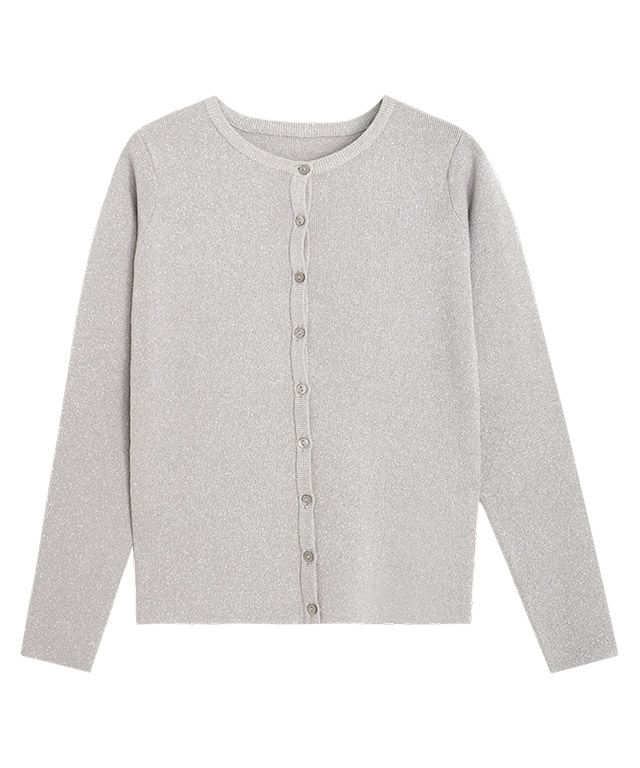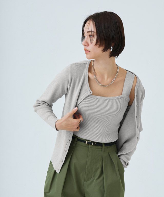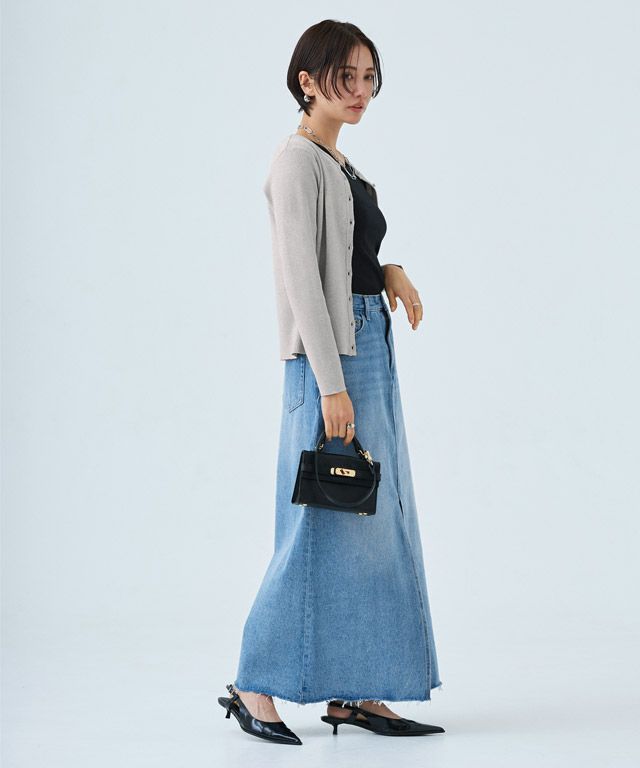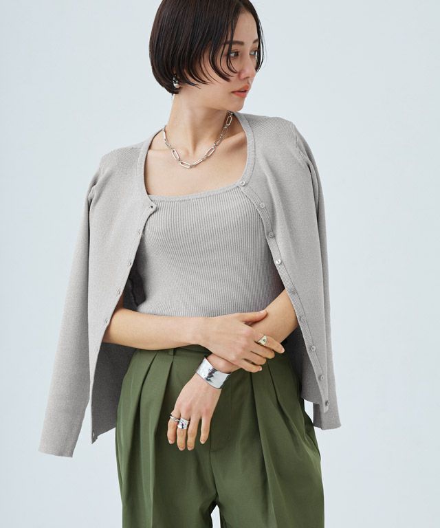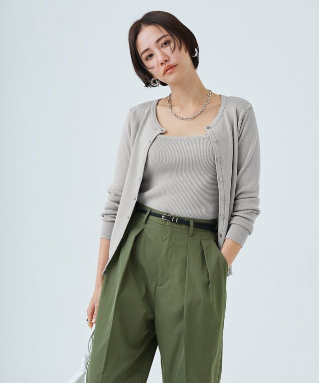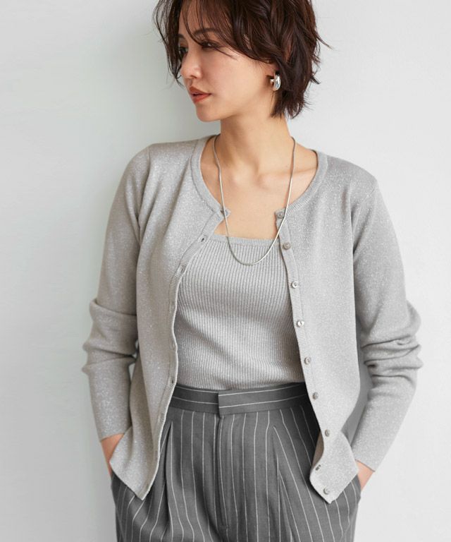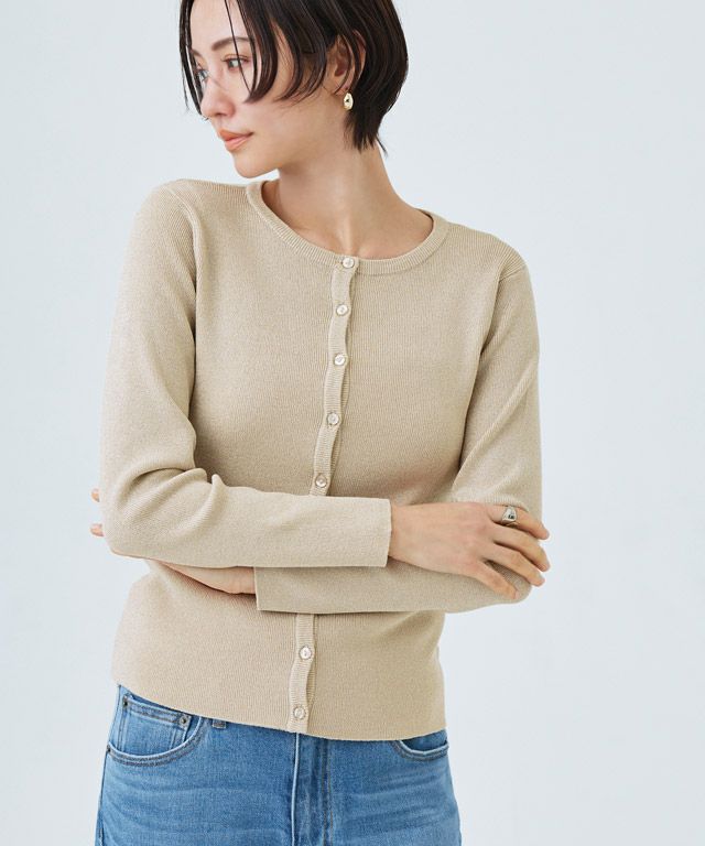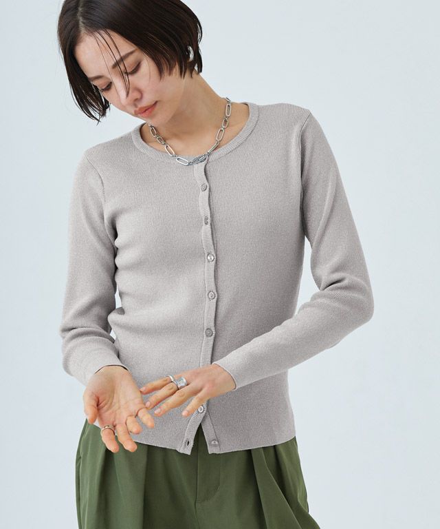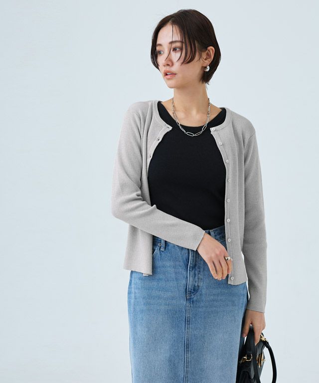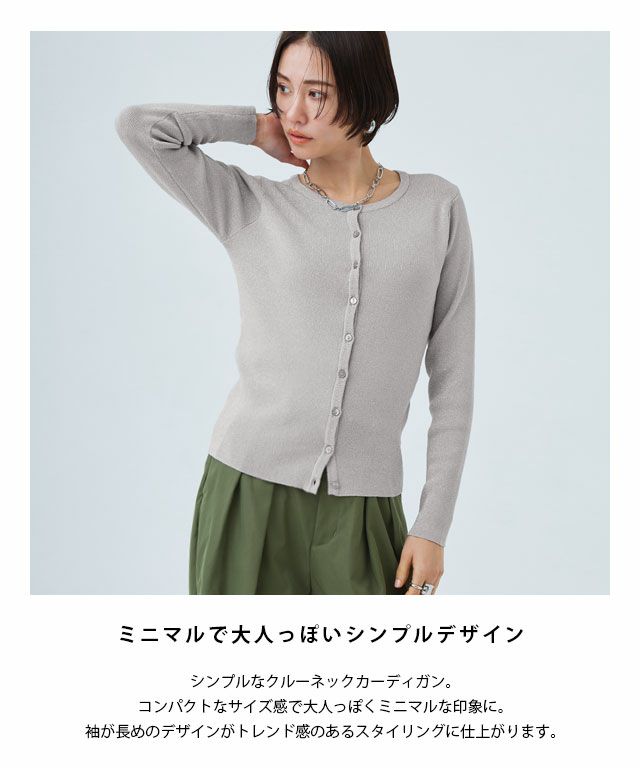 シンプルなクルーネックカーディガン。コンパクトなサイズ感で大人っぽくミニマルな印象に。袖が長めのデザインがトレンド感のあるスタイリングに仕上がります。