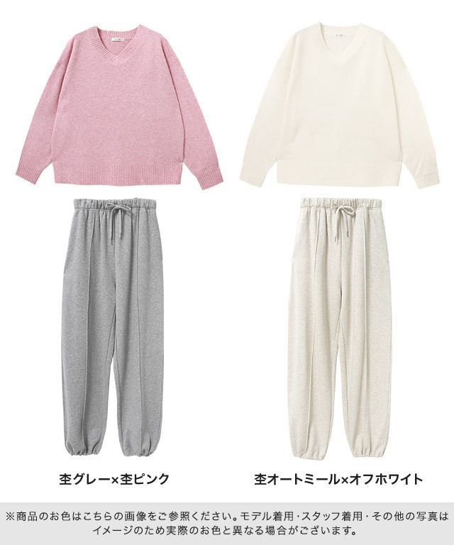 [RASW]【コーデセット】Vネックニット×スウェットパンツ