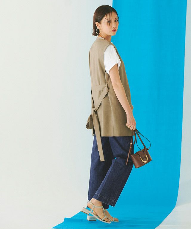 程良く裾に向かって広がったセミフレアシルエットと、あえて長めに設定した丈感で美脚効果を発揮します。センタープレスを施すことでカジュアルスタイルの中にも、きれいめな印象をプラス。幅を持たせた裾のステッチで足元にもアクセントのあるデザインです。