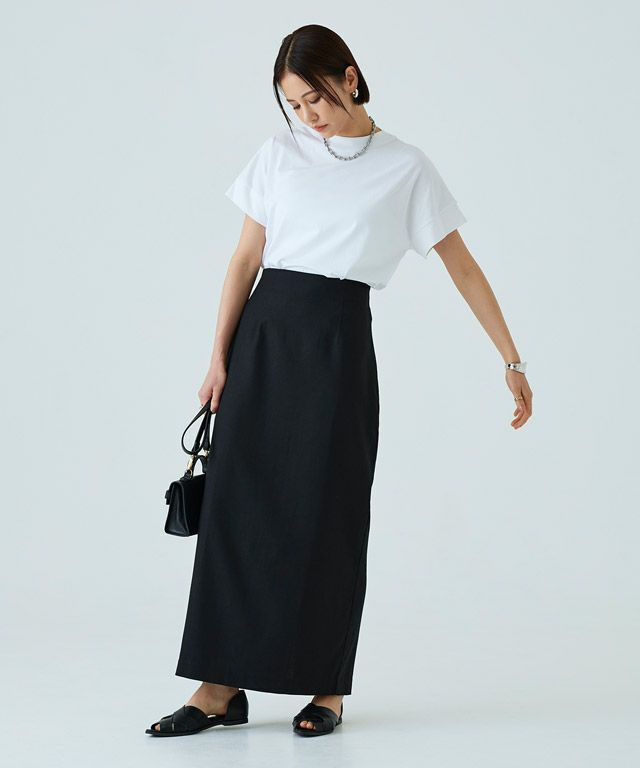 袖に施された切り替えデザインがアクセントとなったシンプルなTシャツです。ゆったりとしたボクシーなシルエットがモードな雰囲気を演出します。アウトスタイルがおしゃれに決まるコンパクトな丈感も魅力です。さらに、サイドスリットが程良い抜け感をプラスしています。