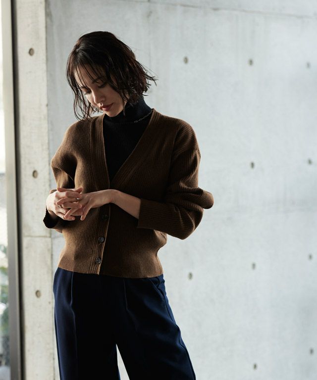 程よく厚みのあるしっかりとした素材感が美しいシルエットを作り出します。リブ編みで表情のある一枚です。ウール混で温かみのある風合いも魅力の一つ。