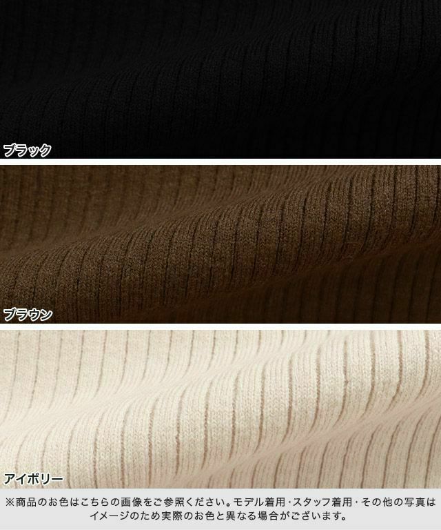 また、ニット製品は生産の過程上「生地を織る際の糸の継ぎ目」繊維の「混紡」、プレス加工、製品洗い加工によって形やサイズ(5cm前後)に誤差が生じる場合がございますが品質上の問題はございません。