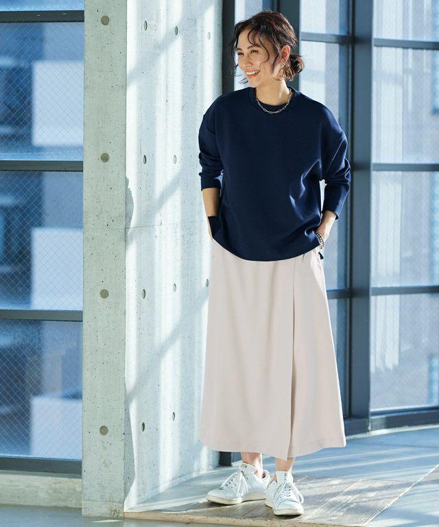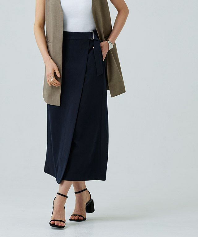 落ち感と、きめの細かい素材感が大人の上品な雰囲気を叶えます。程良く厚みもあり、シーズン問わず活躍できるところも魅力の一つです。 ストンと落ちるストレートシルエットスカート。内側にスリットの入ったラップデザインがシャープで抜け感のあるスタイリングに。サイドベルトでアクセントをつけた一枚です。歩いてもめくれない仕様になっているので足さばきもしやすいデザイン。ON/OFF問わず着用できます。 【ブランド】 RASW(ラス)