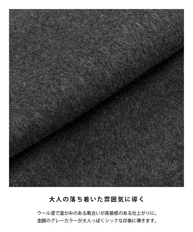 ウール混で温かみのある風合いが高級感のある仕上がりに。杢調のグレーカラーが大人っぽくシックな印象に導きます。