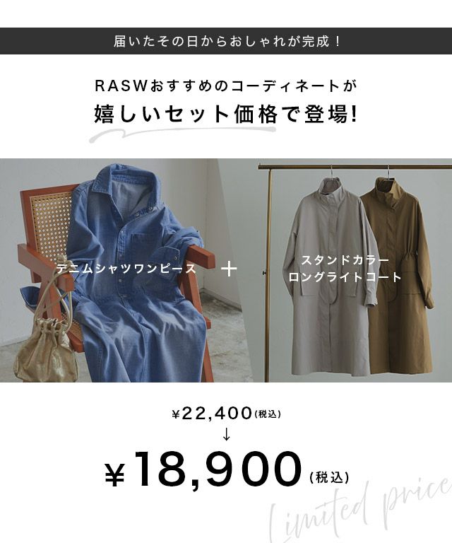 他の画像を見る #送料無料 #新作 販売期間 2026/01/23 17:00 〜 [RASW]【コーデセット】ライトコート×デニシャツワンピset◆送料無料 ¥ 18,900 税込 お気に入りに登録する