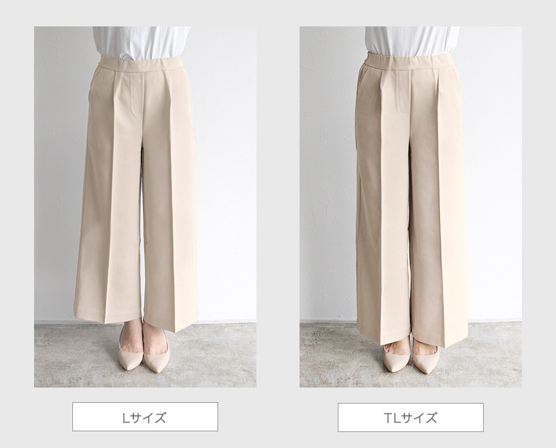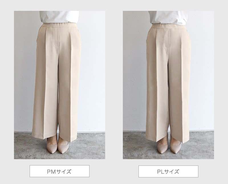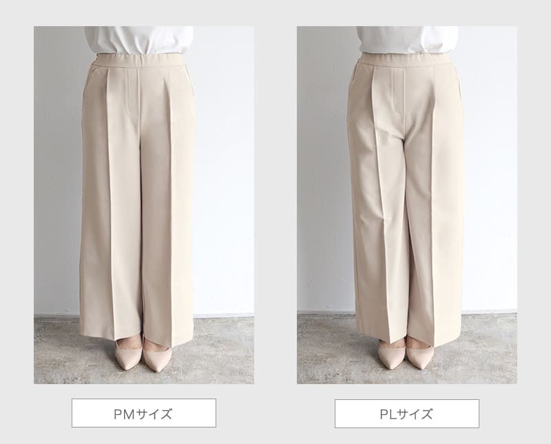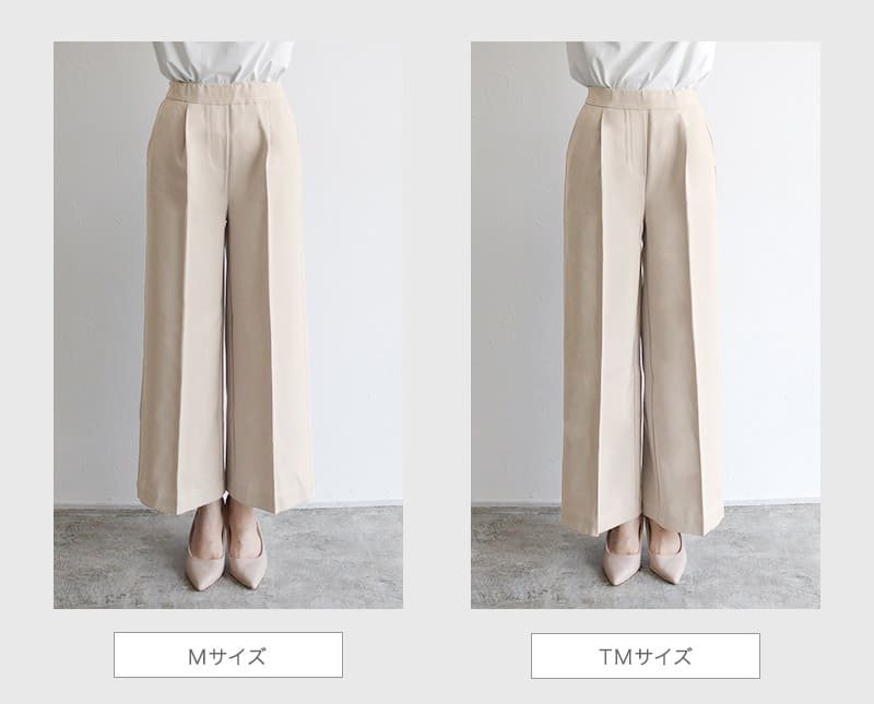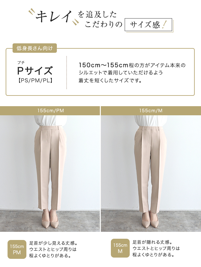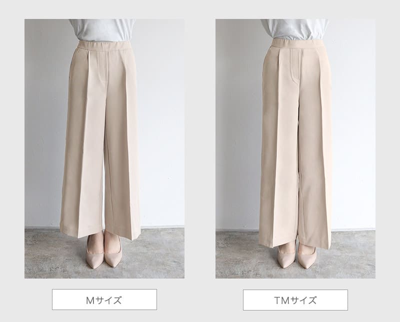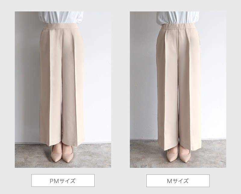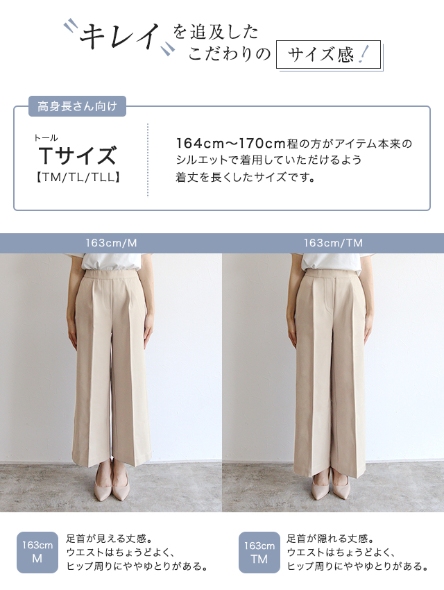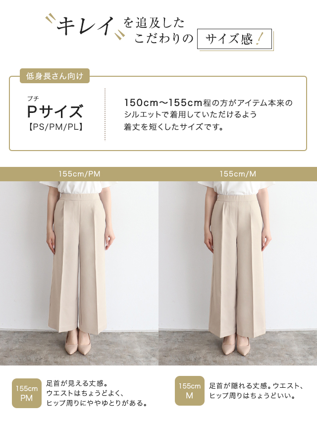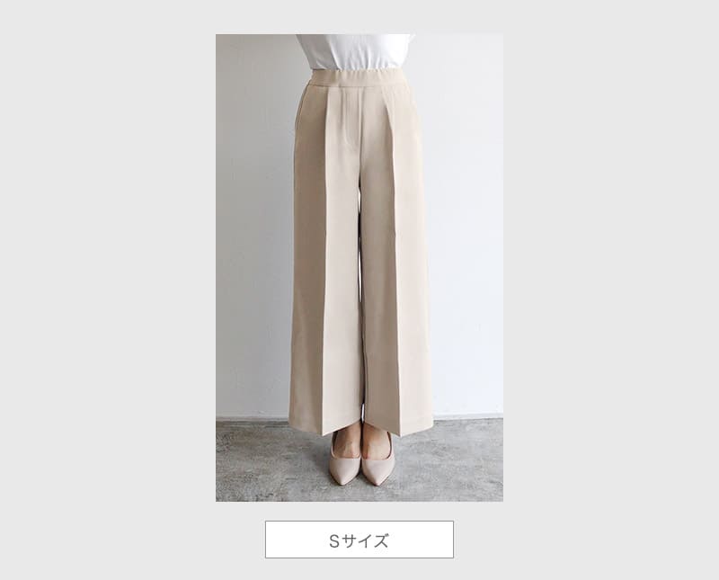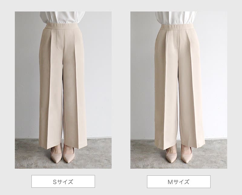 S:着丈は足首が隠れ、フラットシューズでも穿ける丈感です。ウエストはちょうど良く、ヒップと脚周りはゆとりがありました。少し長めに穿きたいので私はSサイズを選びます。