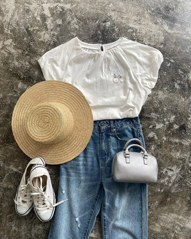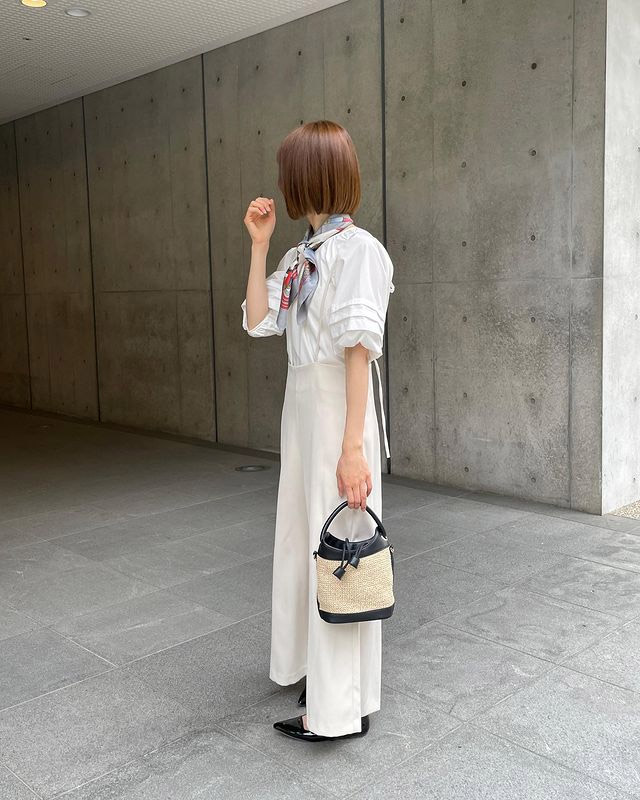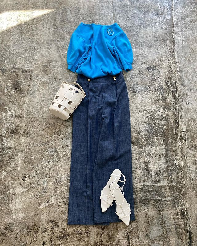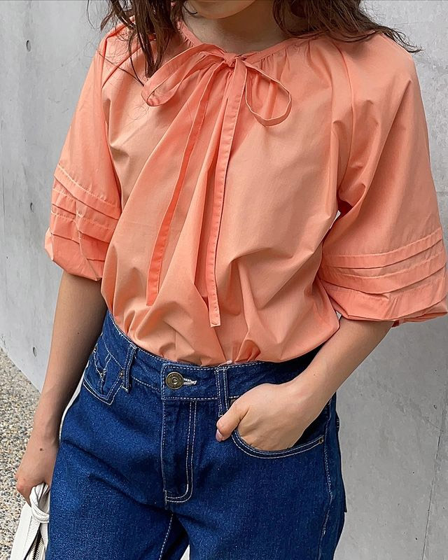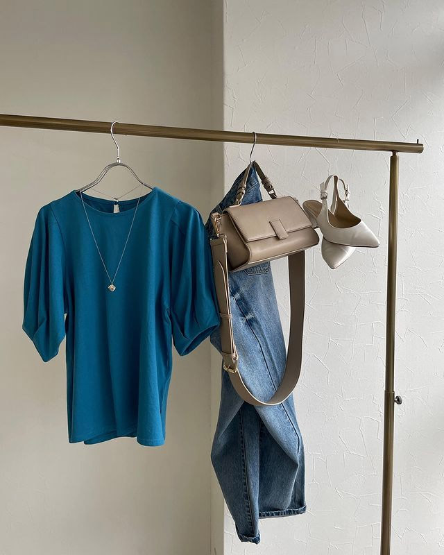 肩周りまでボリュームのあるパフスリーブは、夏のワンツーコーデも華やかにしてくれます♡