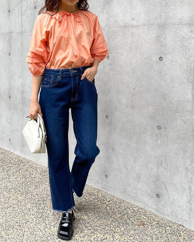 デニムなどのカジュアルテイストのボトムス合わせなら、すっきりと決まります!