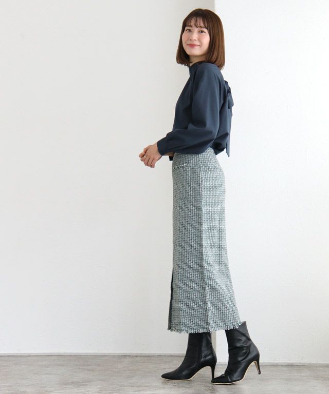 他の画像を見る クーポン対象 販売期間 2025/11/20 17:00 〜 2025/12/01 16:59 ブラックフライデー★20%クーポン ツイードロングスカート ¥ 4,490 税込 お気に入りに登録する