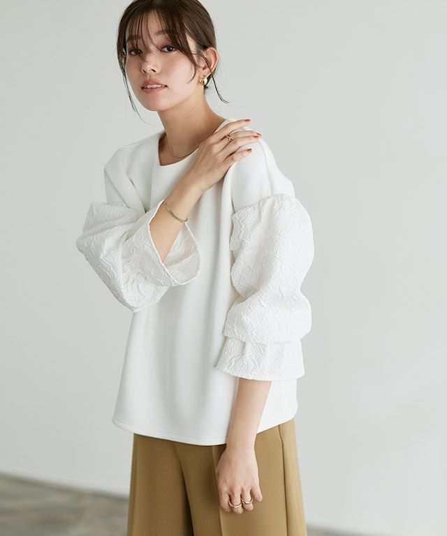 他の画像を見る #SALE 販売期間 2026/02/04 17:00 〜 2026/02/19 16:59 \決算セール!特別価格/ カットジャカードパフスリーブプルオーバー ¥ 2,990 税込 ¥ 1,990 税込 お気に入りに登録する