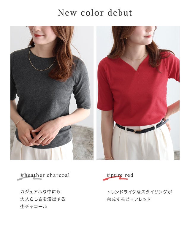 他の画像を見る #送料無料 販売期間 2026/04/21 17:00 〜 2026/04/24 16:59 [期間限定☆送料無料](~4/24 16:59まで) 選べるネック5分袖テレコリブカットソー 【Pierrot】 [送料無料] ¥ 1,790 税込 お気に入りに登録する