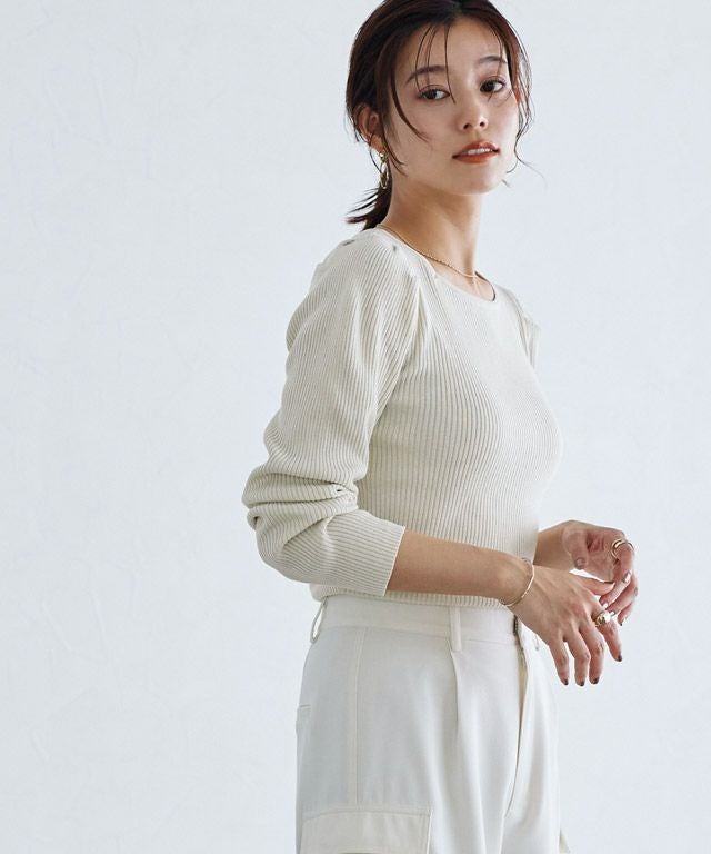 他の画像を見る #SALE 販売期間 2025/12/02 17:00 〜 \WINTER SALE!10%OFF/ ゴールドボタンパフスリーブニット ¥ 2,790 税込 ¥ 2,511 税込 お気に入りに登録する