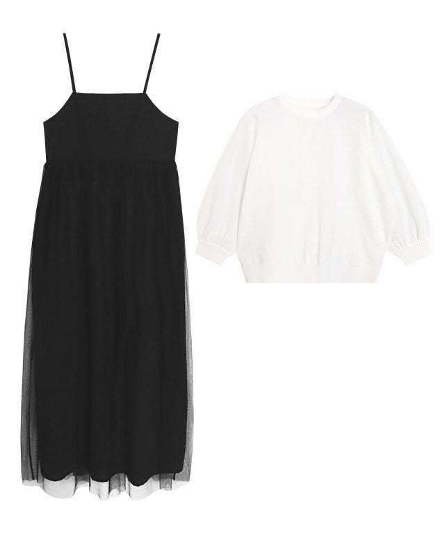 他の画像を見る #SALE 販売期間 2026/02/04 17:00 〜 2026/02/19 16:59 \決算セール!特別価格/ バルーンニットセットチュールキャミワンピース ¥ 6,390 税込 ¥ 4,590 税込 お気に入りに登録する