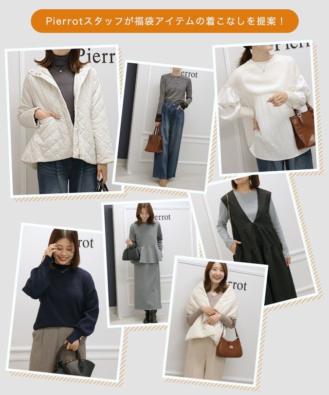他の画像を見る #送料無料 販売期間 2026/01/01 0:00 〜 \1月1日 0時再販/無くなり次第終了トップスからアウターまで揃う、冬の着回し自在10点セット 【Pierrot 福袋】Daily Styling Bag ◆送料無料 ¥ 22,000 税込 お気に入りに登録する