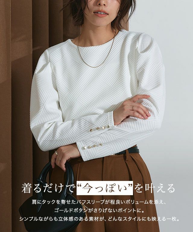 他の画像を見る #SALE 販売期間 2026/02/04 17:00 〜 2026/02/19 16:59 \決算セール!特別価格/ カットジャカードパフスリーブプルオーバー ¥ 2,990 税込 ¥ 1,990 税込 お気に入りに登録する